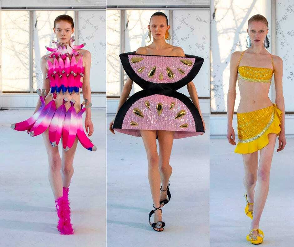 “This season is all about fruits,” Panszczyk told Vogue. “The beauty of them, but also the symbolic meaning of them. In a way you can think of fruit as something fresh, a new start, but when it starts decaying, it becomes about mortality.” You know, I definitely felt at least 10 percent more alive when I looked at the show — which really did feature a lot of bananas — because it was just FUN in a 2009 Lady Gaga sort of way.
