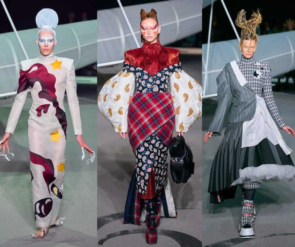 10a - Thom Browne sidenote: At the end of the show, which fell on Valentine’s Day, Browne came out with what looked like a heart-shaped box of drugstore chocolates. He walked down the sandy runway and handed them to his partner, Andrew Bolton, who leads curation at the Costume Institute, and was sitting as usual next to Met Gala queen Anna Wintour. Watch the video because it was adorable.