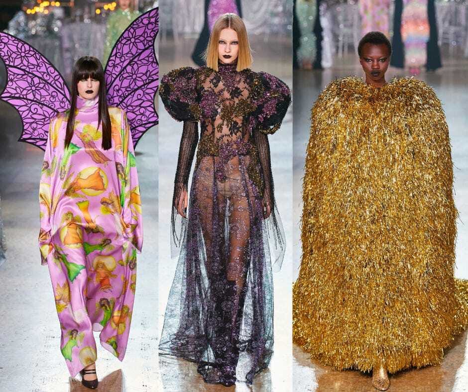 12 - Rodarte’s collection was shown in Williamsburg (Y2K, y’all!) and inspired by Gothic fairies. Vogue: “Four models wore bulbous shapes made entirely from metallic fringe. They were powerful and fun, and the way they caught the light as the models walked down the runway brought an element of whimsy and fantasy to the collection.” Go Fug Yourself: “Some of these are fascinating, some are BONKERS, some are just run-of-the-mill hideous. There are bonnets. Explosions of flowers. Sheers. Questionable knitwear. Prints of what I think are their mom’s commissioned fairy drawings. And, in a too-literal touch, wings.” (PS, the GFY girls have a new Substack! Check it out: )