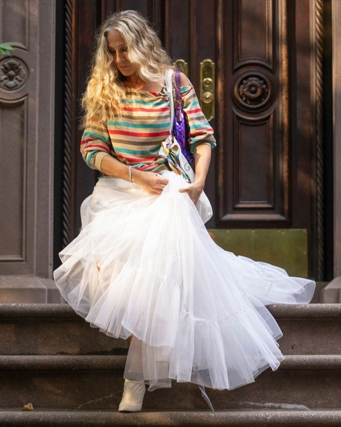 Reading some of these stories, though, one might come away with the idea that everyone is out there dressing like Carrie Bradshaw to do something as mundane as walk the dog or grab a latte. Like, “I don’t feel like making coffee today, let me throw on my crinoline and stilettos for the 20-minute trip to Blue Bottle. Come on, Tinkerbell, let’s grab your Valentino Barbiecore rockstud collar, I’M FINALLY LEAVING THE HOUSE DON’T DRAG ME DOWN NOW.”