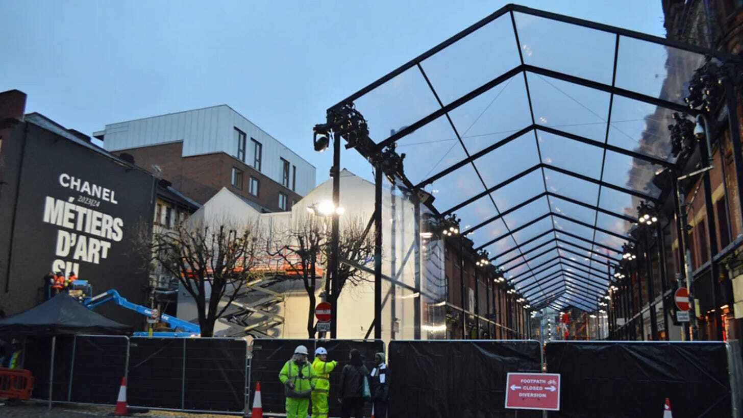 One thing locals rather enjoyed about Chanel’s presence was the tent over Thomas Street, which has been dubbed “the Chanel tunnel.” It’s not just any old street covering, but a couture structure made just for that street. Chanel has offered Manchester the chance to keep it, though it has to be taken down now because it was erected under a temporary license and bureaucracy prevents it from being left up. If the city decides to put it back, that would result in a “significant” cost, a source told the Manchester Evening News.