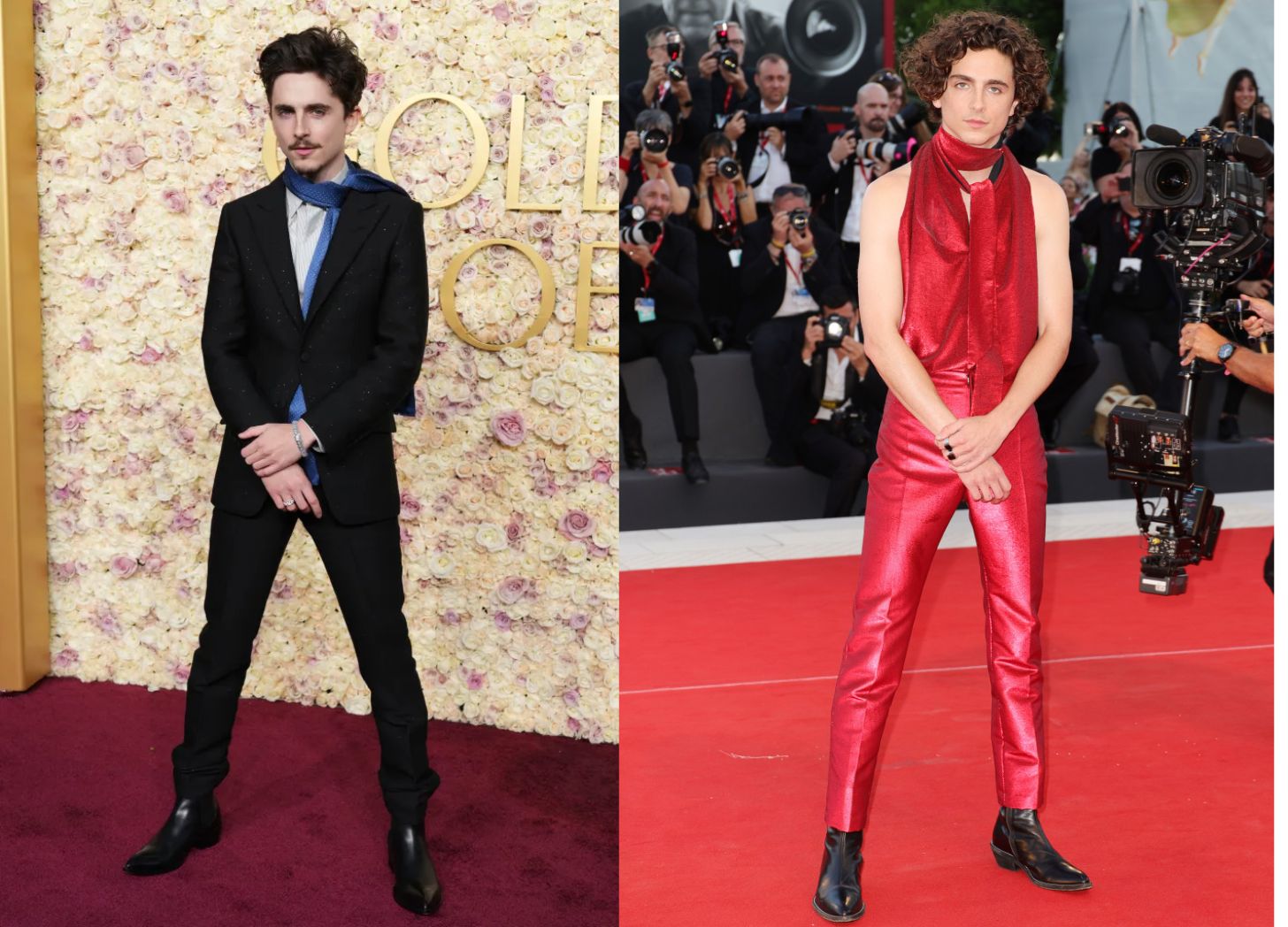 Timmy and Haider are pals. They once designed a splatter-paint hoodie together to support Afghan women. Haider famously dressed Timmy in the red backless halter top and tailored pants that fit so well you know shiny fabric enthusiast The Rock put it on a mood board. His Globes suit was slender without looking dated. He walked the carpet with his tie flung over his shoulder, but as the night wore on, it wandered to his chest where it hung like a pendant necklace. It was no red backless showstopper, but he has style and looked much more natural in this than many men did in their colored suits and unfortunate double-breasted jackets.