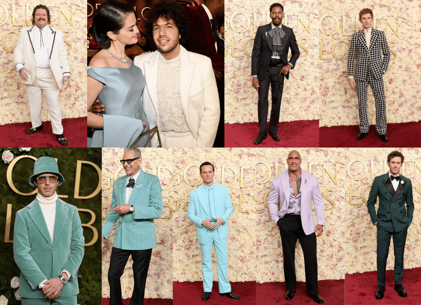 Penguin suits are out, resulting in a wide range of menswear on red carpets that’s finally as interesting to observe as the womenswear. The Bear’s Matty Matheson wore a bolo tie, which at one point would have been a big “worst-dressed” situation. But in 2025 it was fun but also a shrug (it was no turquoise bucket hat). Benny Blanco’s suit was textured, as though it was made of towels. Aquamarine suiting on Jeremy Strong, Jeff Goldblum, and Andrew Scott was a surprising “three is a trend” moment. Nobody Wants This star Adam Brody wore a green double-breasted Prada suit that fashion people seemed to like but the double-breasted design and how he buttoned it sort of gave tunic top. The Rock wore a lavender shiny shirt and matching jacket with a brooch that fit him much better than the shiny gray suit he wore to the Oscars last year. Eddie Redmayne wore a well-tailored checked suit by Valentino that would have looked spectacular on Tilda Swinton. It was a lot of look — maybe too much look. Maybe even more look than Jeremy Strong’s look! Colman Domingo, also in Valentino, struck the perfect balance.