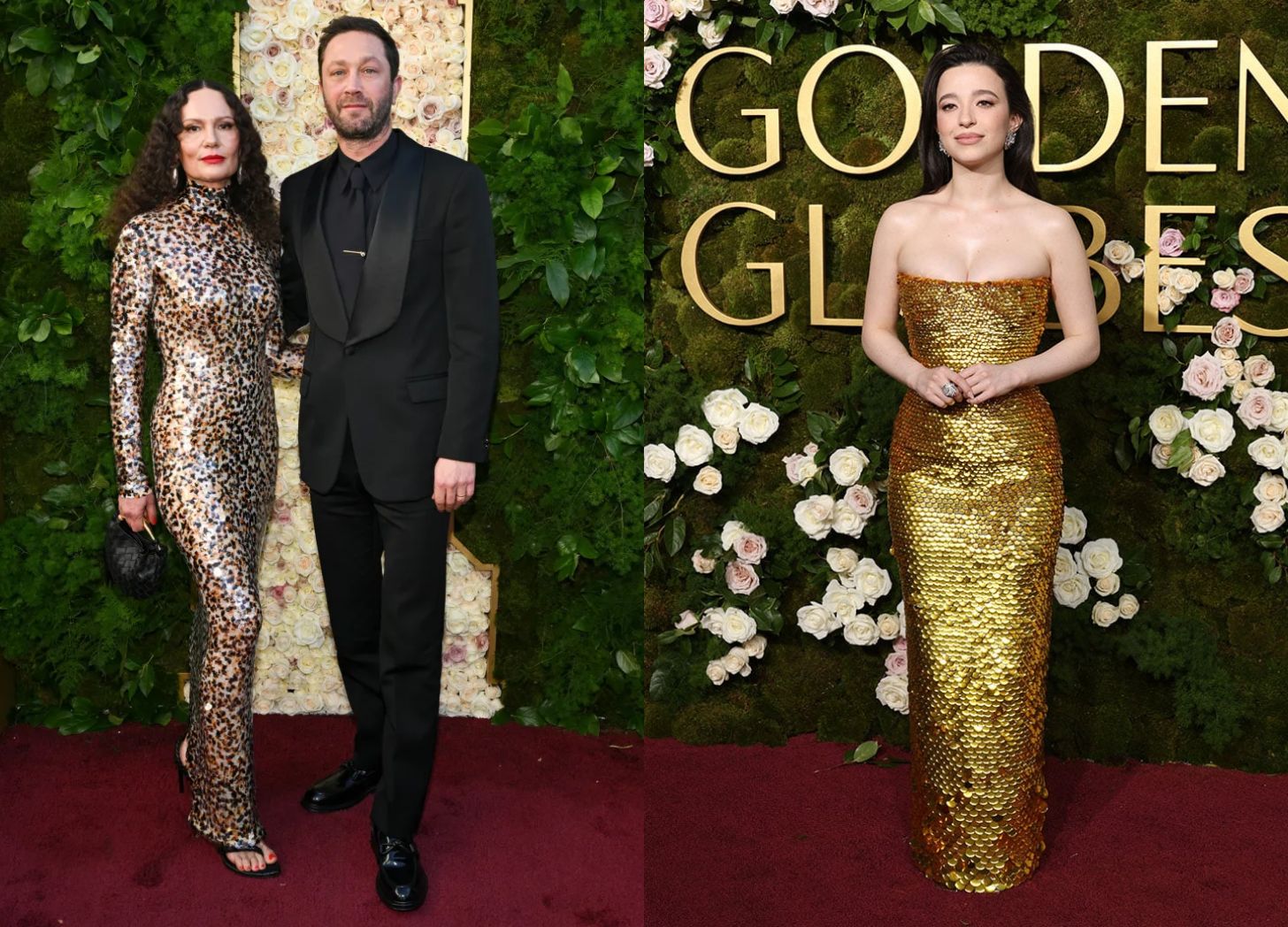 The Bear’s Eban Moss-Bachrach and his wife Yelena Yemchuk both looked amazing in Bottega Veneta. Her minimalist yet glitzy look was flawless down to her sandals and teeny woven bag. Moss Bachrach managed to avoid wearing a traditional tux while still looking sharp and stylish instead of awkward. Fashion people were also loving Anora star Mikey Madison in a gold Bottega column.