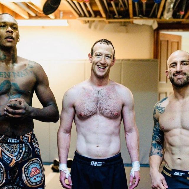 If the Barbie movie somehow felt it needed even more attention, it could have sent Mark Zuckerberg down the pink carpet in L.A. without a shirt. Or maybe with a tight T-shirt, something Y2K-ish. Because the internet is ablaze with reactions to the shirtless photo he posted Tuesday. He posed with nothing but a pair of workout shorts alongside people who, Insider informs MMA ignoramuses like me, are “two of the most successful modern MMA fighters of this generation,” Israel Adesanya and Alex Volkanovski.
