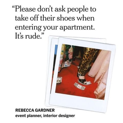 Numerous other commenters noted that removing shoes before entering someone’s home is customary in many non-American cultures. But Gardner’s tip revived a decades-old debate: Is it really so wrong to ask guests to your home to take off their shoes?