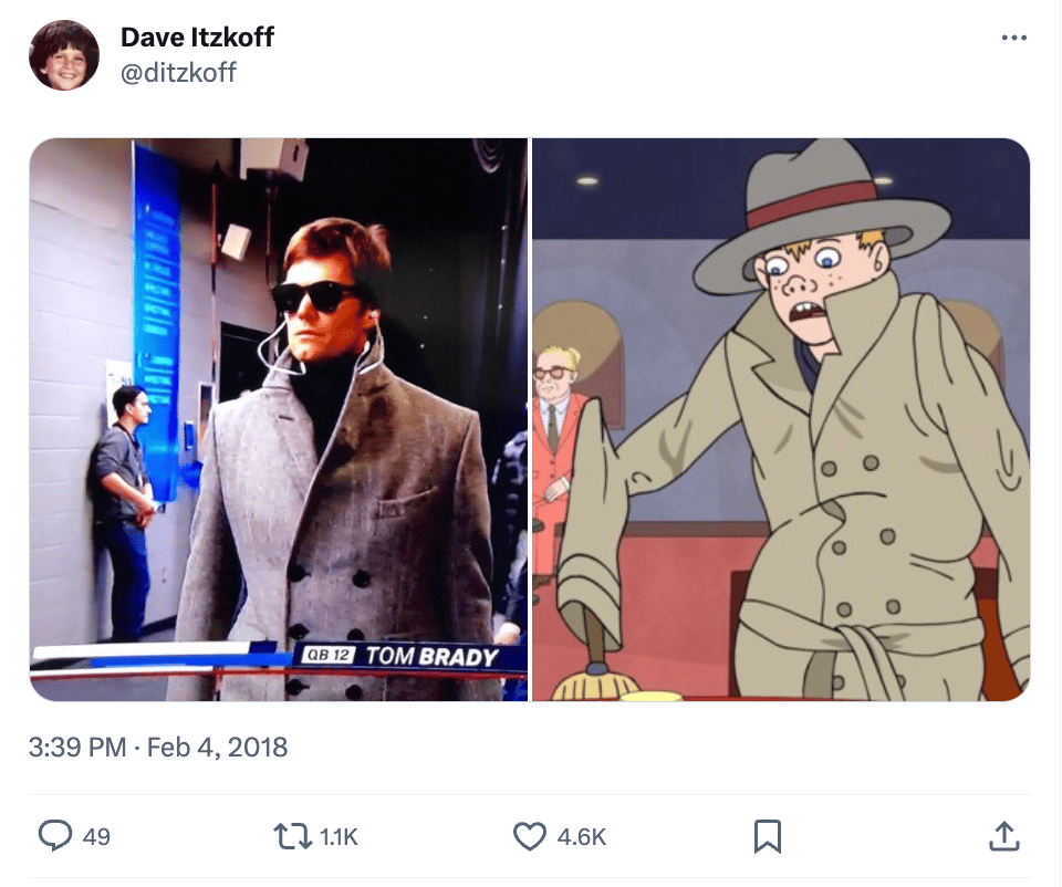 Stadium arrivals have taken on added significance since Taylor got involved in all of this and a lot more of us started paying attention, whether we wanted to or not. Before this season, the last time I remember really taking note of what a man wore to walk into a football stadium was Tom Brady in 2018. He arrived to the Super Bowl with a dorky haircut and fitted gray coat that had Twitter comparing him to, among other things, a mom who got the wrong latte at Starbucks and wanted to speak to the manager.