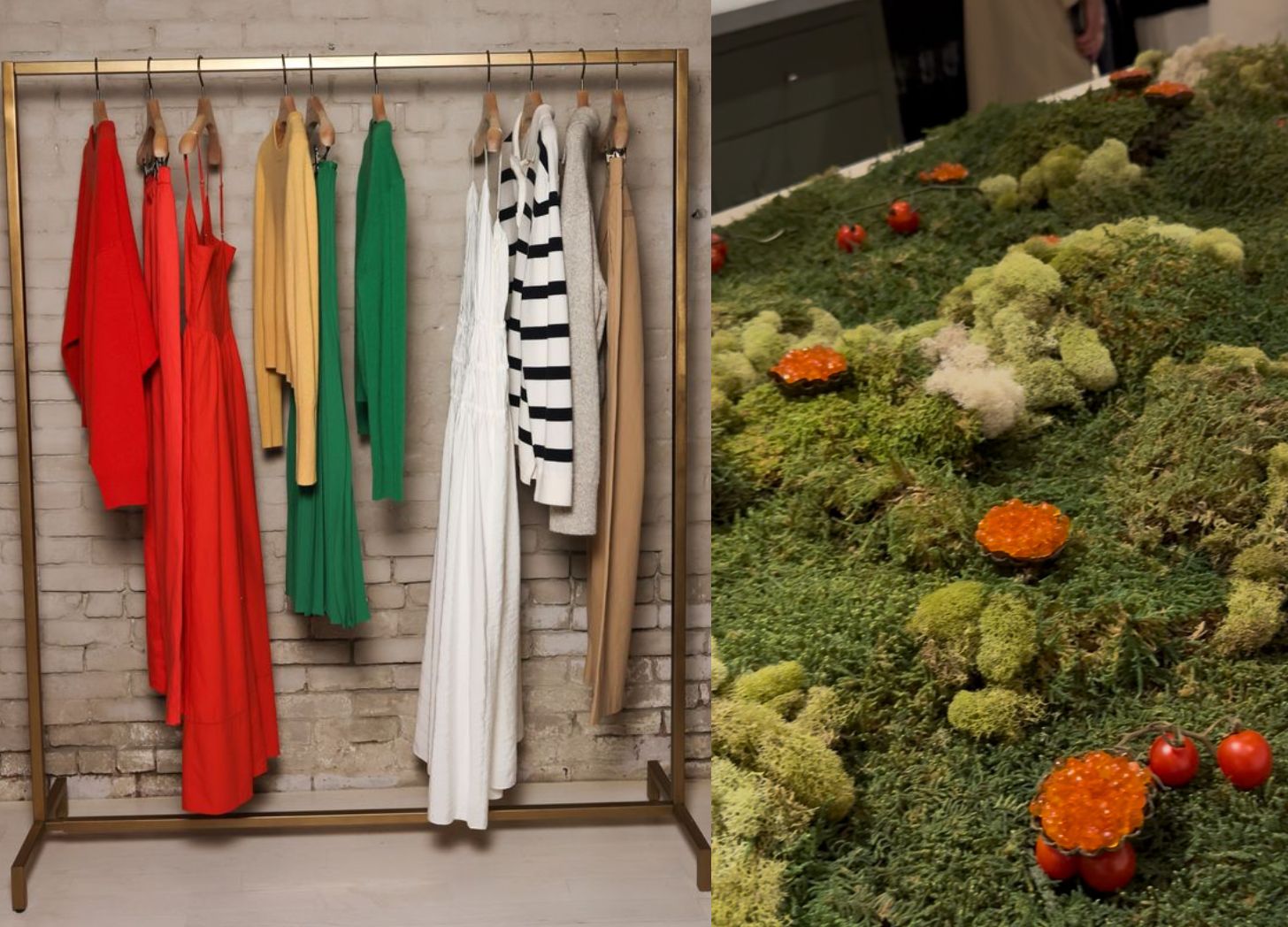 I spent as much of my weekend as possible checking out shows and events, starting with Jenni Kayne’s Friday presentation in her Soho store. Kayne brilliantly evolved her collection of popular sweaters and easy midi skirts with vivid shades of tomato red and grass green — bright, yet still earthy. She served mini seaweed tartlets filled with chopped up shrimp cocktail, some with caviar, arranged on a table of moss and accented with cherry tomatoes on the vine. It was basically an art installation and almost no one touched it.