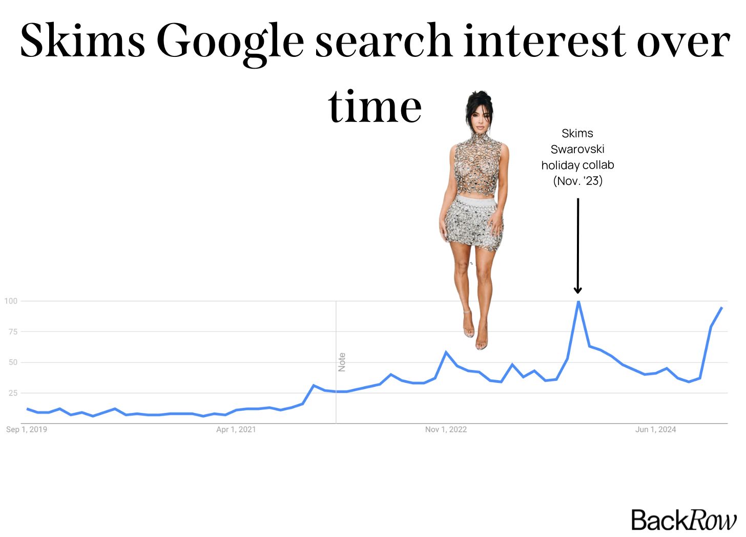 This is not all bad news for Kim, though. While interest in her specifically is declining, interest in Skims, her most successful brand, is holding steady, perhaps increasing.