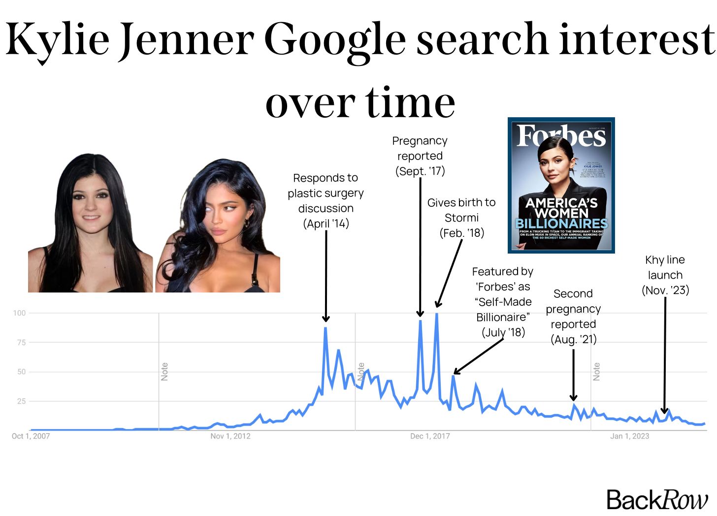 The KarJenners are known for brands that come and go. Fashionista even published a handy story about these in 2018, “A Brief History of the Failed Kardashian Beauty Brands No One Ever Talks About,” including Khroma Beauty and Kylie Cosmetics. I wouldn’t be surprised if Khy also didn’t last — it’s launch generated basically no additional search interest in Kylie.
